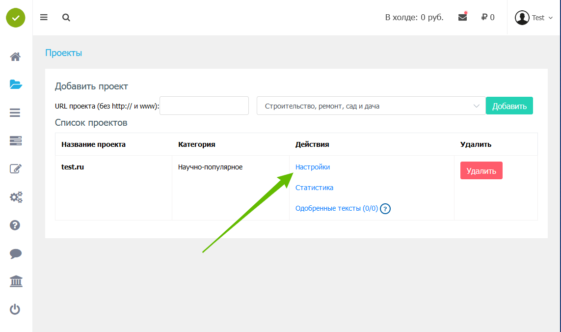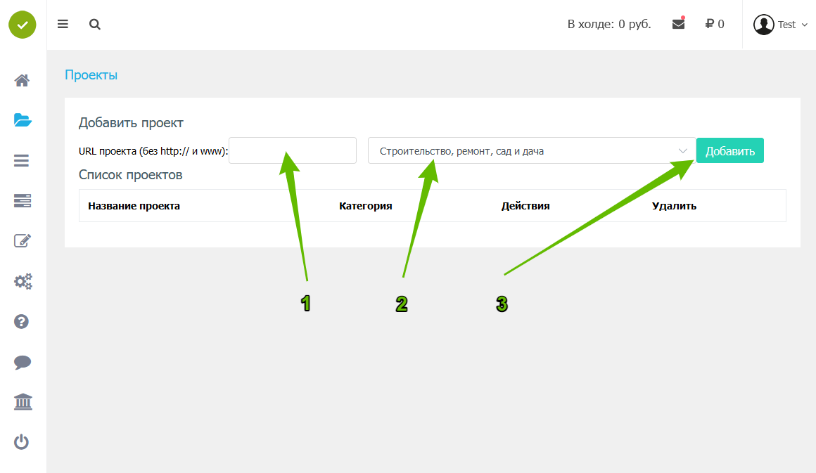 Перейдите на страницу проектов, укажите ссылку на сайт, выберите категорию и нажмите добавить.