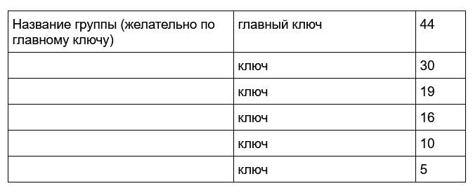 Ядро должно содержать в себе название группы (главный ключ), ключи и частотность..